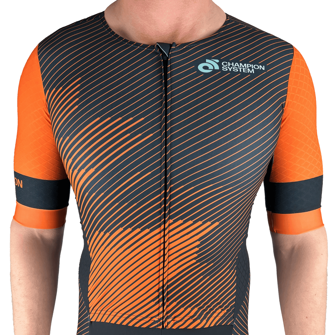 • CS Diamond Aero™ fabric – Unique diamond shaped embossed lycra triggers turbulent flow over the surface to improve speed and aerodynamics. It has been strategically placed on the back and sleeves.